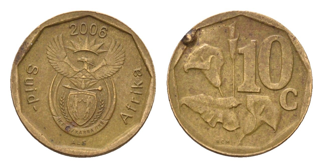 ЮАР 10 центов 2006 герб, цветок алоэ KM 487 сталь плакированная бронзой 4178-134