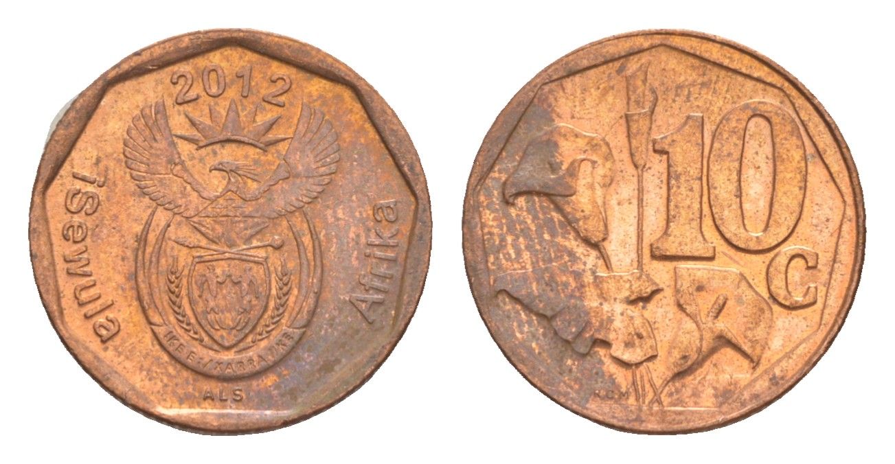 ЮАР 10 центов 2012 герб, цветок алоэ KM 530 сталь плакированная медью 4618-111