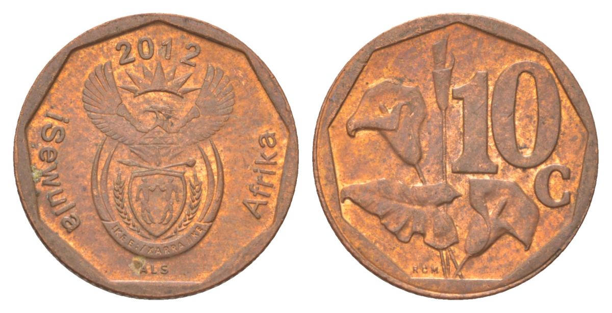 ЮАР 10 центов 2012 сталь плакированная медью 4627-1019