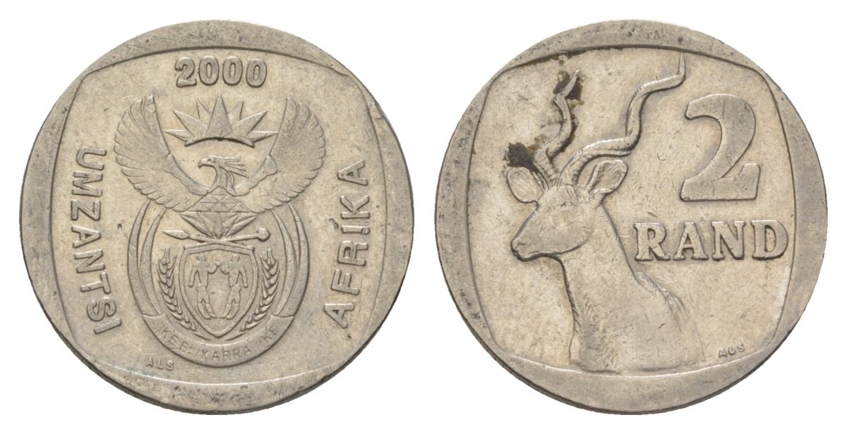 ЮАР 2 ранда 2000 новый тип - редкий KM 228 медь плакированная никелем 4626-1221