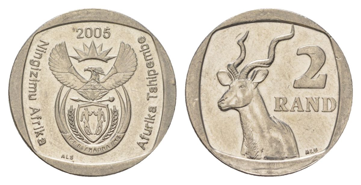 ЮАР 2 ранда 2005 KM 296 медь плакированная никелем UNC 4628-141
