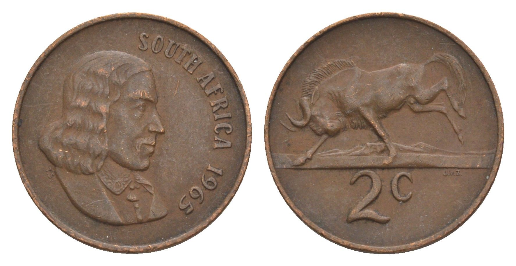 ЮАР 2 цента 1965 Ян ван Рибек (1619-1677), South Africa, легенда на английском, антилопа KM 66.1 бронза 4602-357