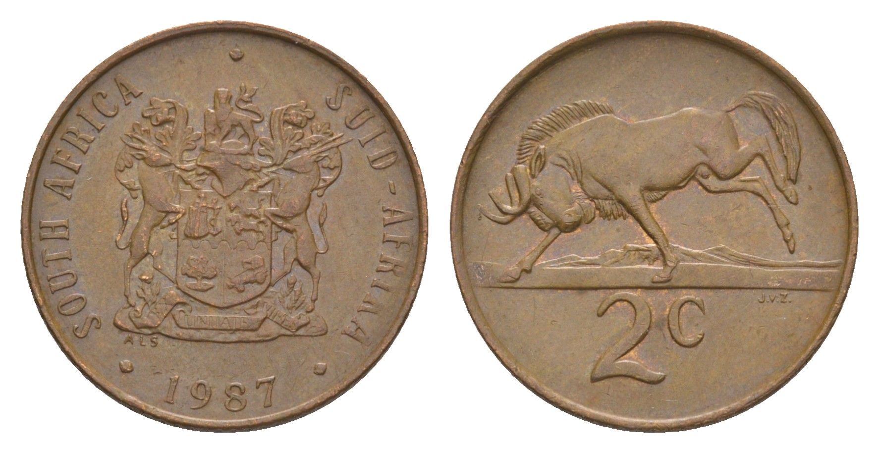 ЮАР 2 цента 1987 герб, антилопа гну KM 83 бронза 4602-835