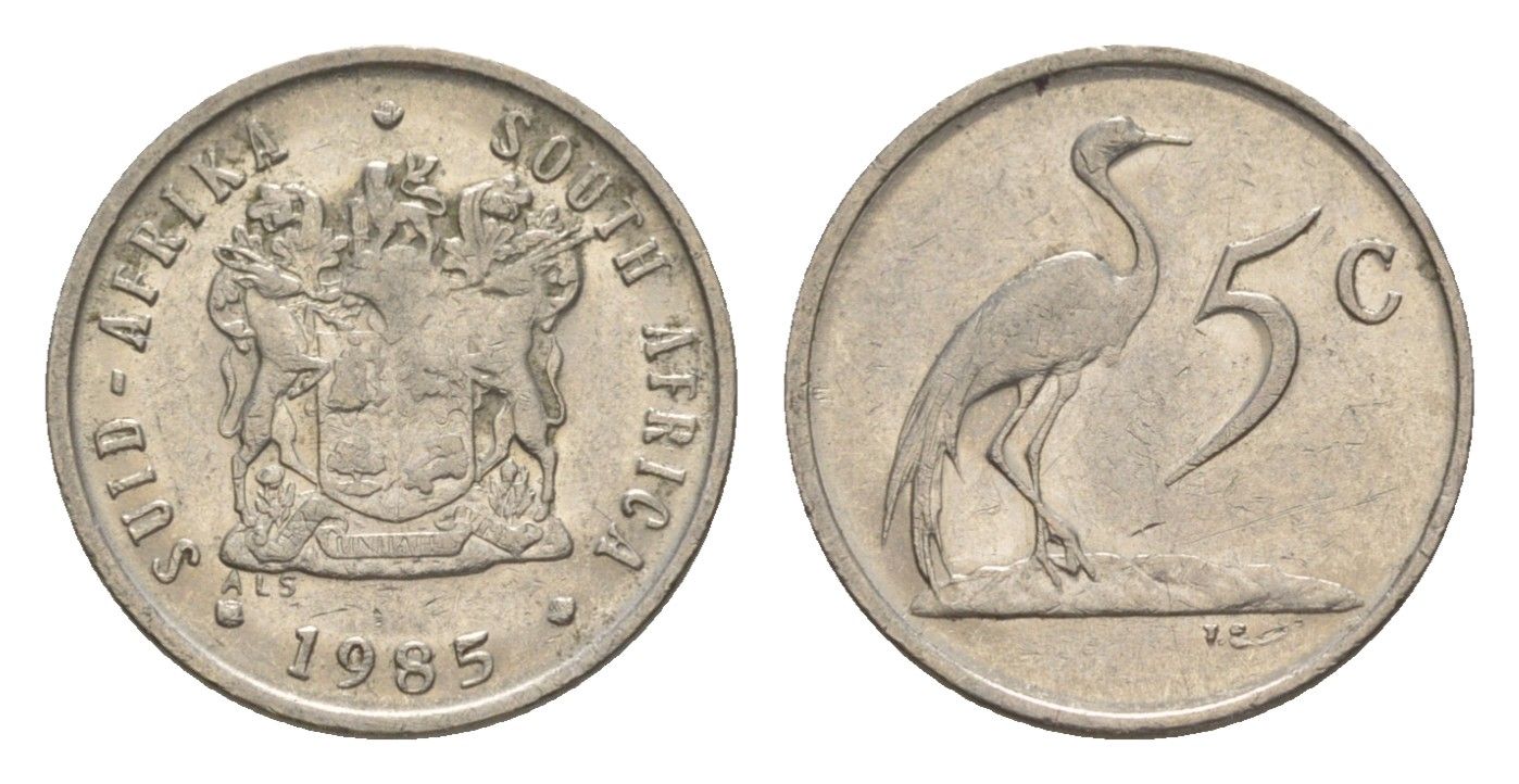 ЮАР 5 центов 1985 герб, райский журавль KM 84 никель 4598-955