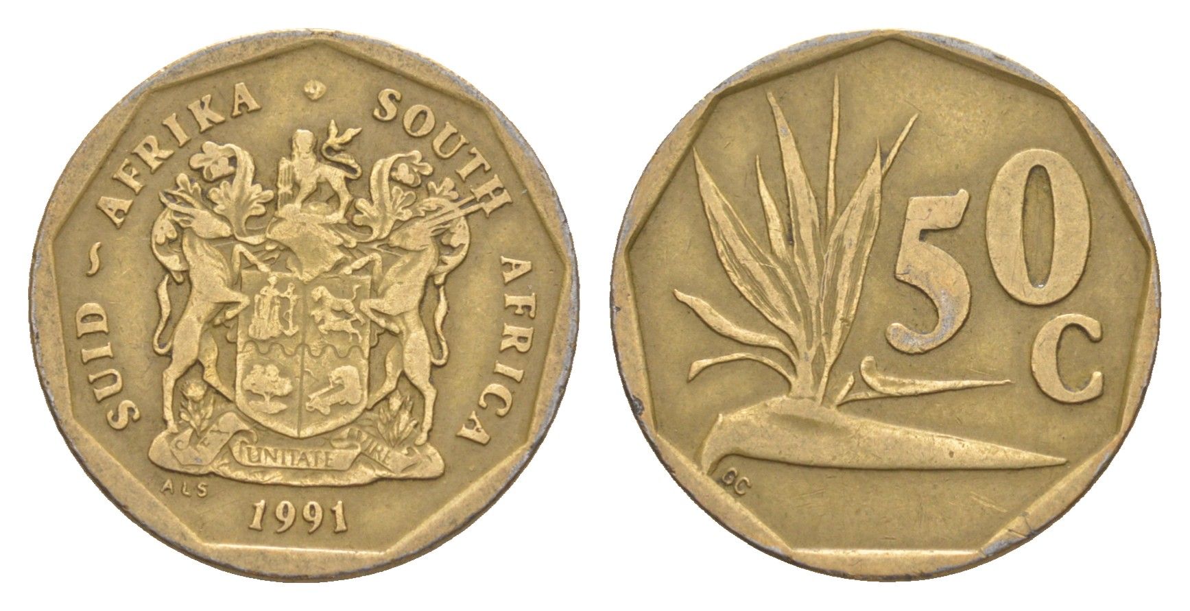 ЮАР 50 центов 1991 Зантедеския Эллиота (калла), герб KM 137 сталь плакированная бронзой 4618-616
