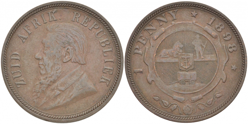 Южно-Африканская Республика, Трансвааль 1 пенни 1898 Пауль Крюгер KM 2 медь 180-833