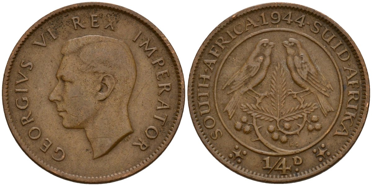 ЮАР 1/4 пенни 1944 Георг VI (1937-1952) KM 23 бронза 4164-636