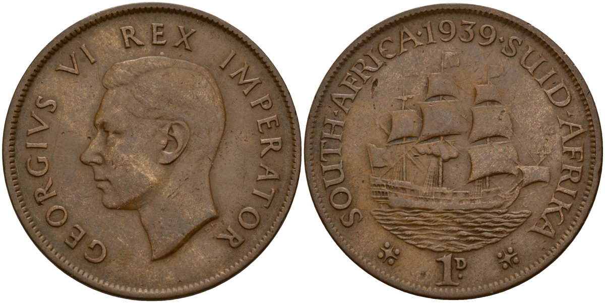 ЮАР 1 пенни 1939 Георг VI (1937-1952) KM 25 бронза 38-812