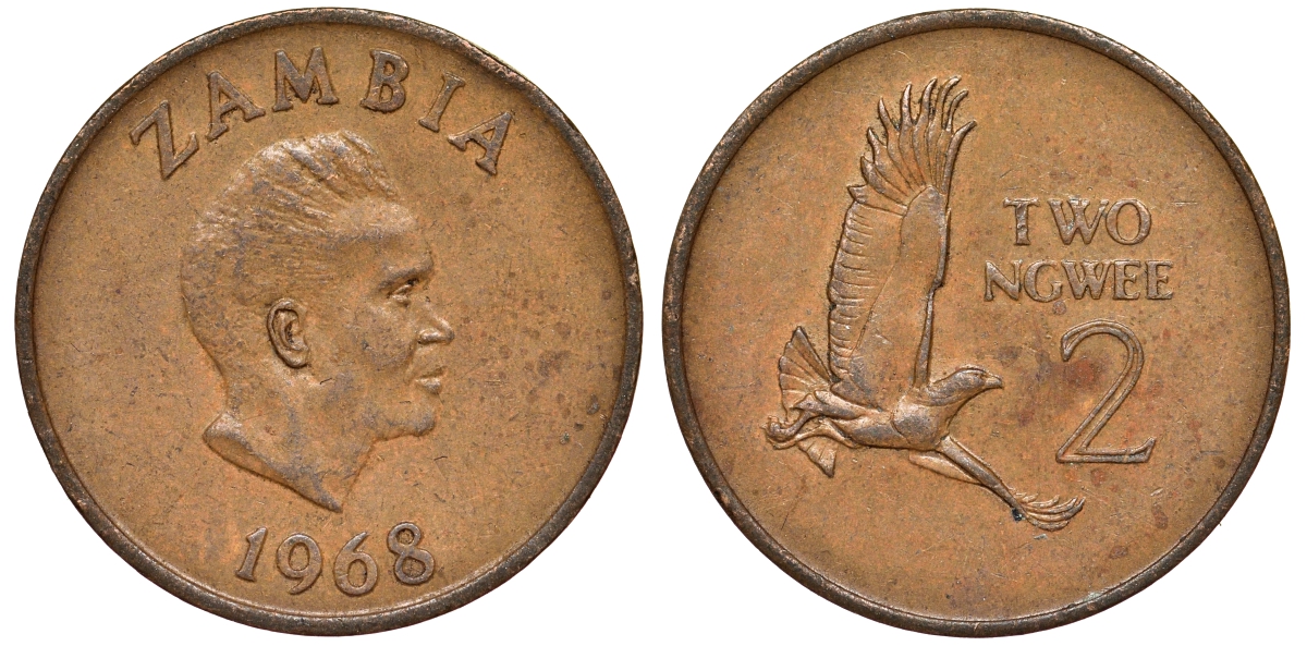 Замбия 2 нгве 1968 Кеннет Каунда, боевой орел KM 10 бронза 4163-856