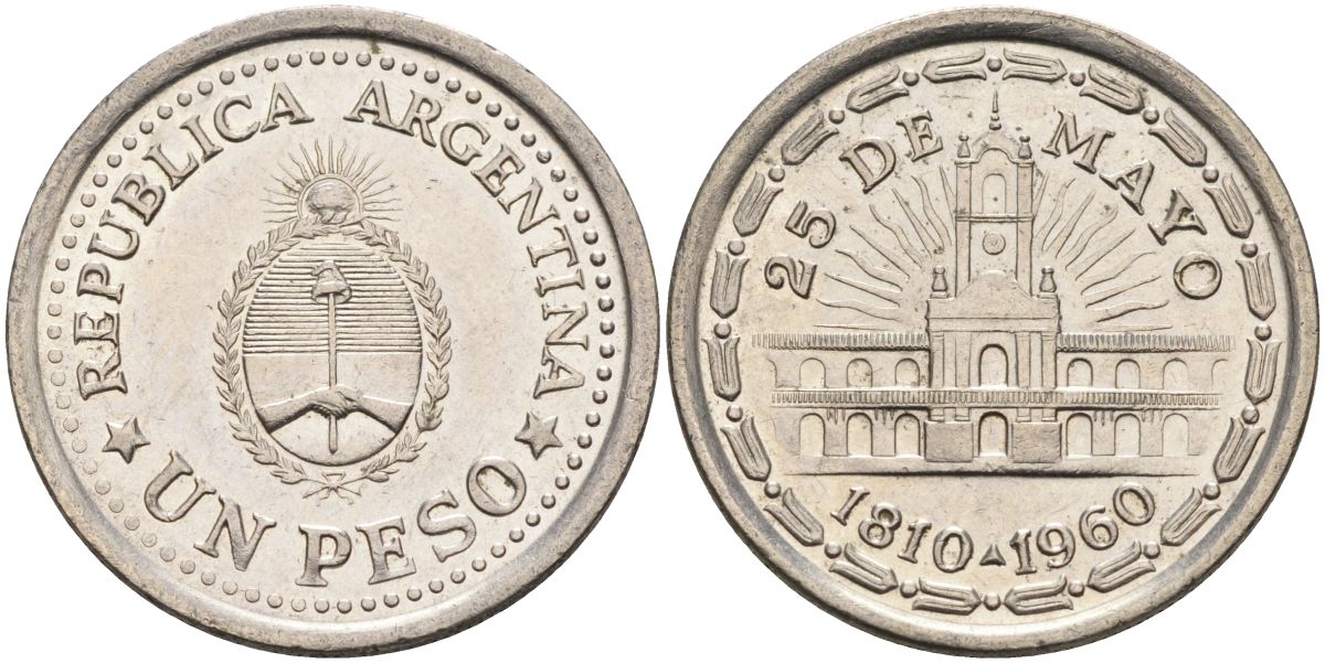 Аргентина 1 песо 1960 150 лет свержения Испанского вице-короля (1810-1960) KM 58 сталь плакированная никелем 4593-1022