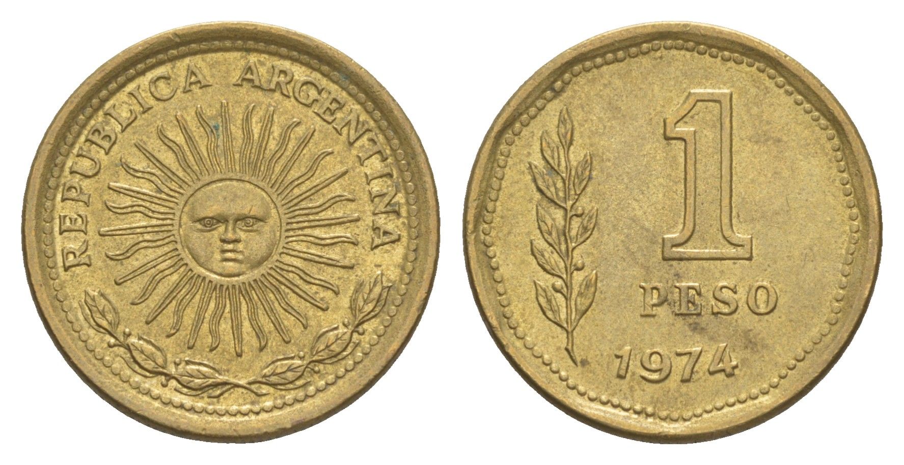 Аргентина 1 песо 1974 майское солнце KM 69 алюминиевая бронза 4613-233