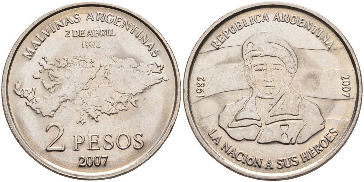 Аргентина 2 песо 2007 25 лет оккупации Фолклендских островов KM 144 медно-никель UNC 4368-532
