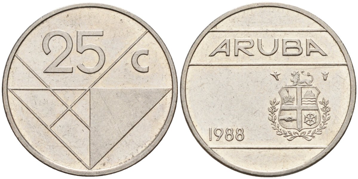 Аруба 25 центов 1988 KM 3 сталь плакированная никелем 4141-122