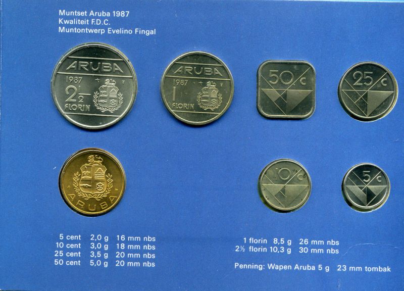 Аруба официальный набор из 6 монет 1987 в оригинальном буклете, с жетоном монетного двора KM MS2 UNC 2-5-2-31