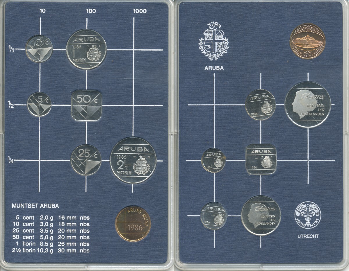 Аруба набор из 6 монет + жетон 1986 монетный двор Утрехт, в пластике KM 1, 2, 3, 4, 5, 6 UNC 1-6-1-08
