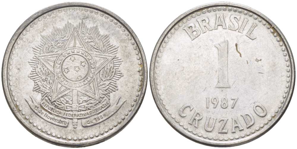 Бразилия 1 крузадо 1987 KM 605 нержавеющая сталь 217-1244
