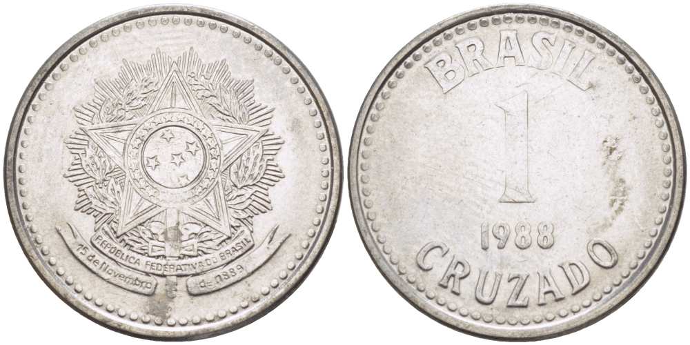 БРАЗИЛИЯ 1 КРУЗАДО 1988 РЕФОРМА 1986-1989 KM 605 нержавеющая сталь 217-254