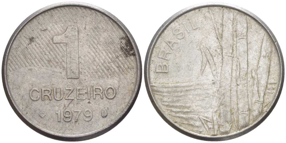 Бразилия 1 крузейро 1979 сахарный тростник KM 590 нержавеющая сталь 46-1846