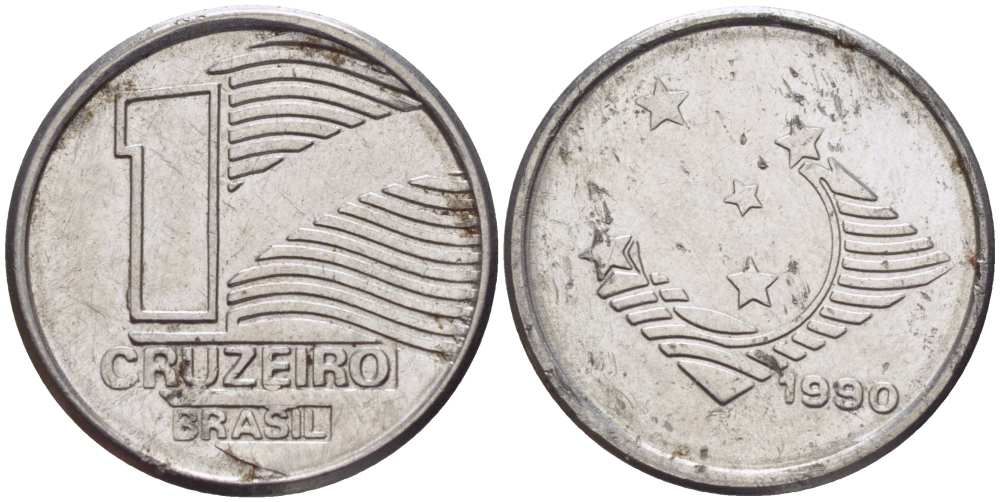 Бразилия 1 крузейро 1990 KM 617 нержавеющая сталь 201-751