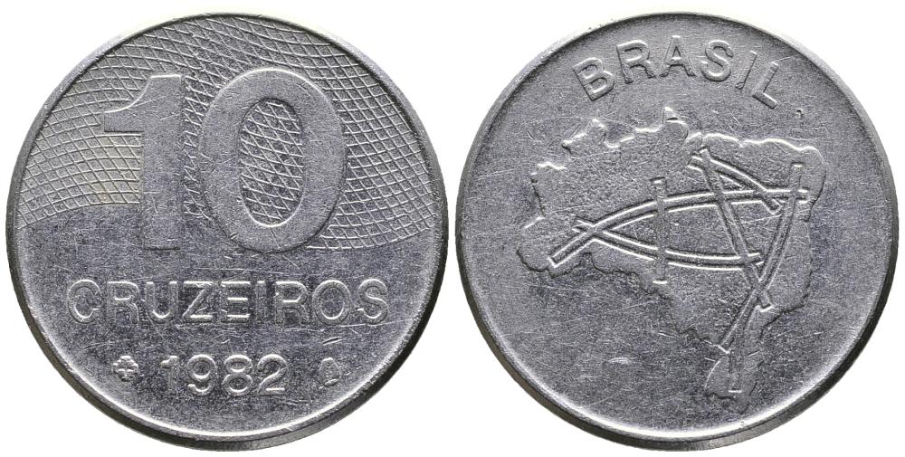 Бразилия 10 крузейро 1982 карта Бразилии KM 592.1 нержавеющая сталь 3336-853