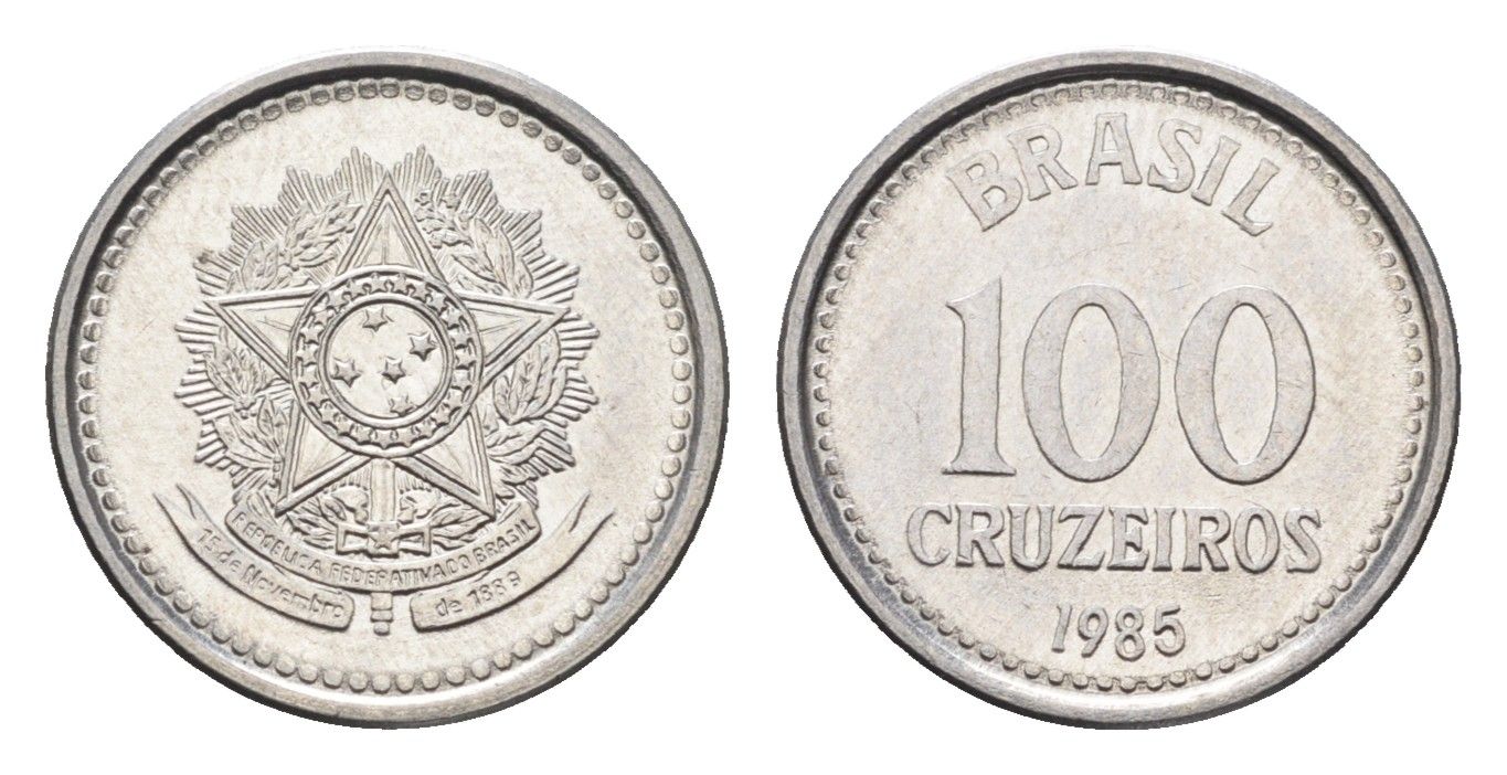 Бразилия 100 крузейро 1985 KM 595 нержавеющая сталь UNC 4664-532