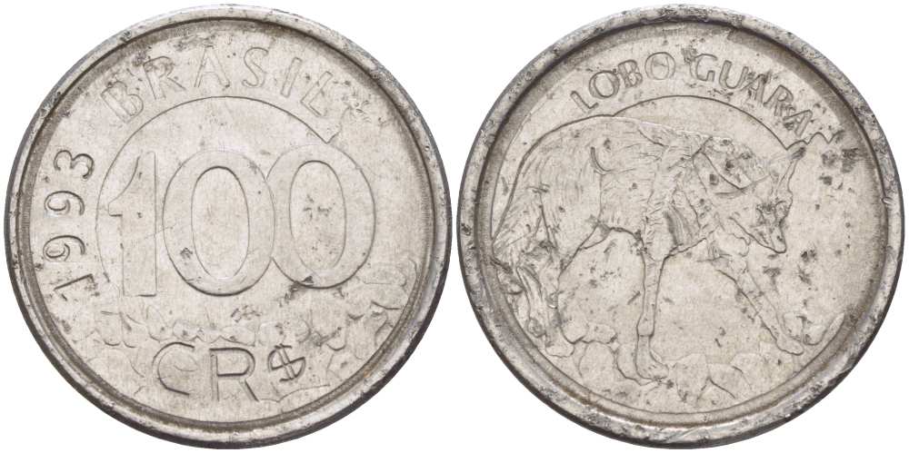 БРАЗИЛИЯ 100 КРУЗЕЙРО РЕАЛ 1993 РЕФОРМА 1993-1994, ВОЛК KM 630 нержавеющая сталь 4388-441