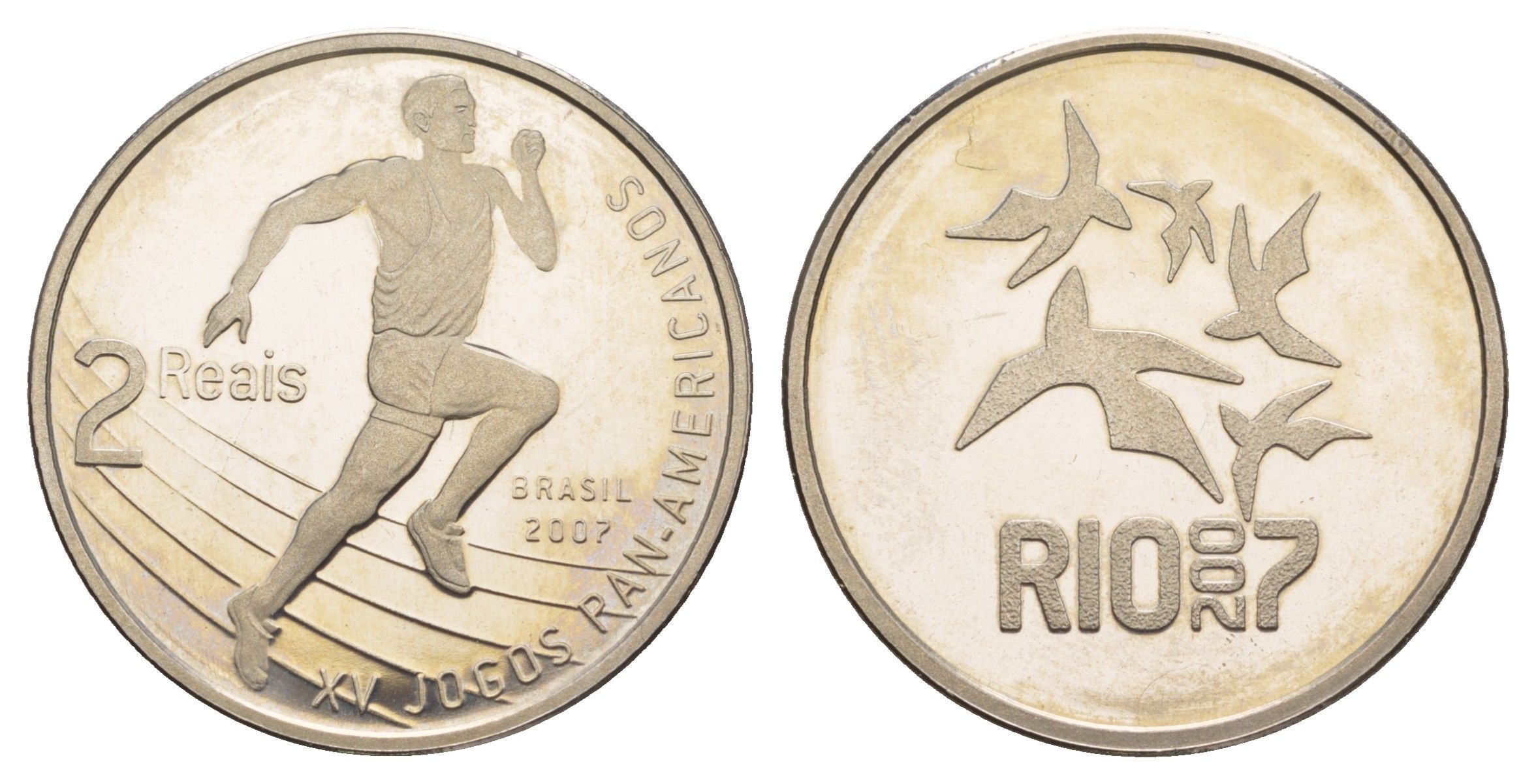 Бразилия 2 реала 2007 XV Пан-Американские игры, Рио-де-Жанейро KM 672 медно-никель PROOF 413-2824