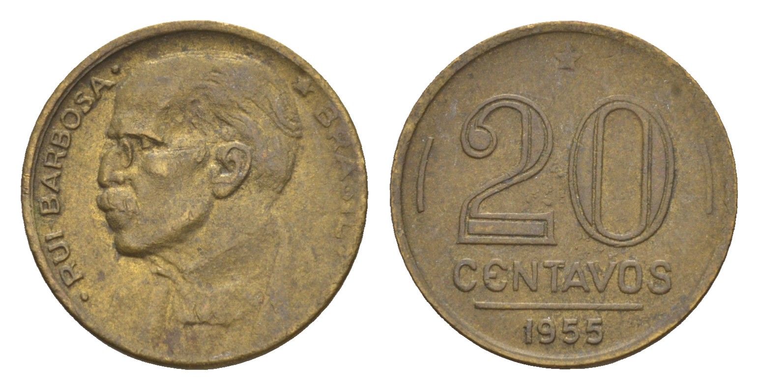 Бразилия 20 сентаво 1955 Руй Барбоза ди Оливейра KM 562 алюминиевая бронза 4655-1113