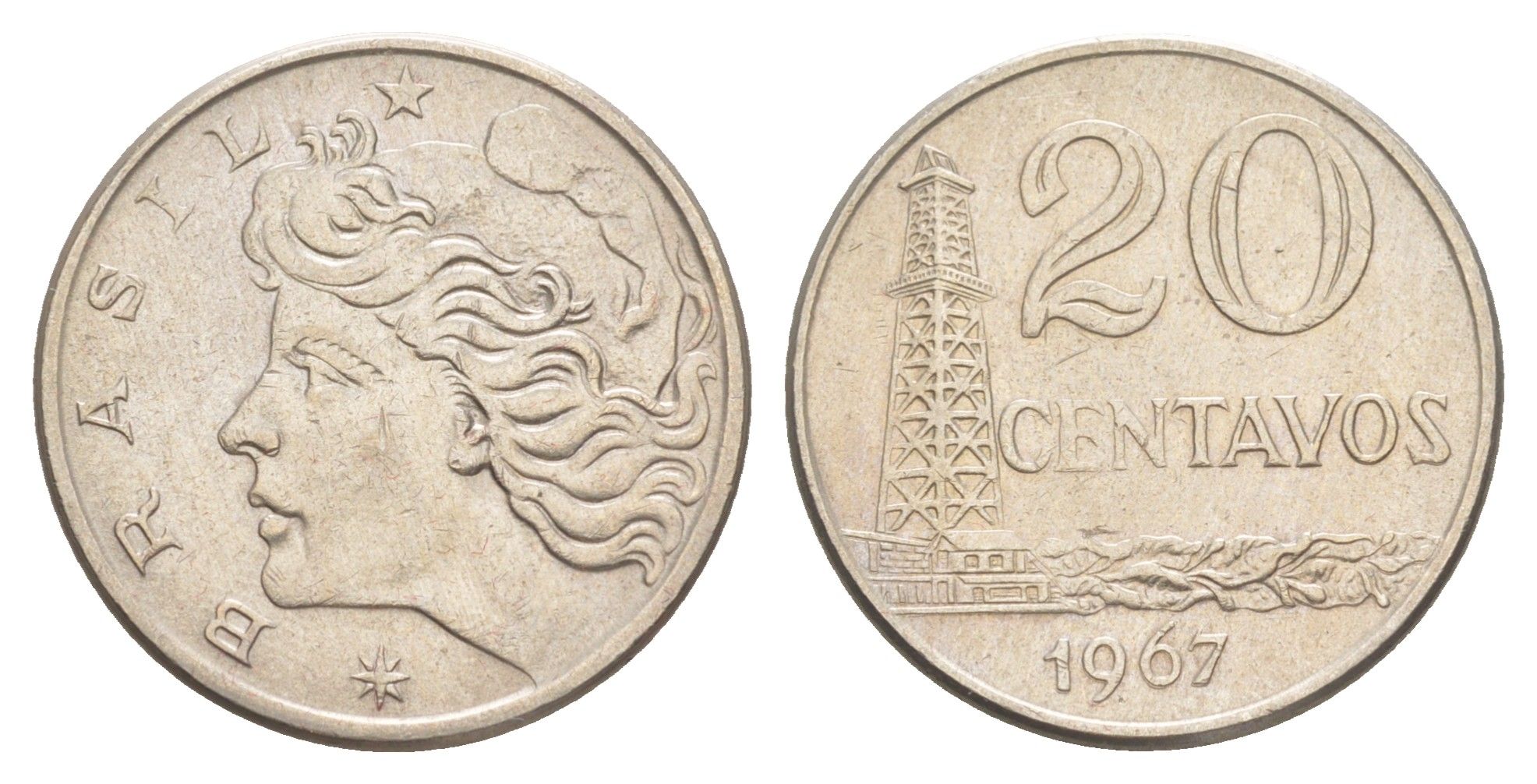 Бразилия 20 сентаво 1967 KM 579.1 медно-никель aUNC 4642-1034