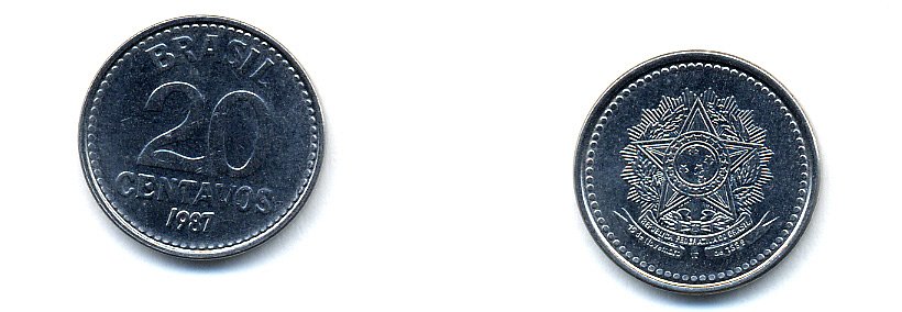 Бразилия 20 сентаво 1987 герб KM 603, Schon 112 нержавеющая сталь aUNC 51-5049