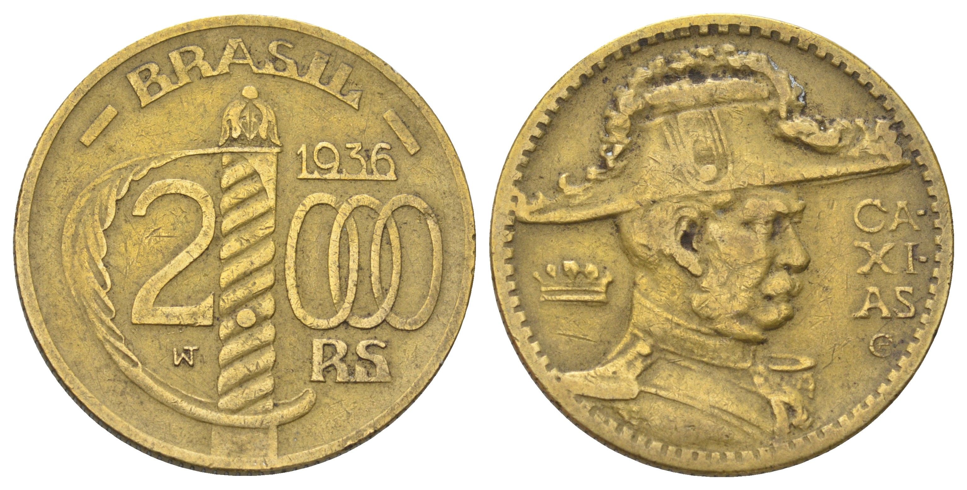Бразилия 2000 реалов (рейсов) 1936 KM 542 алюминиевая бронза 4648-144