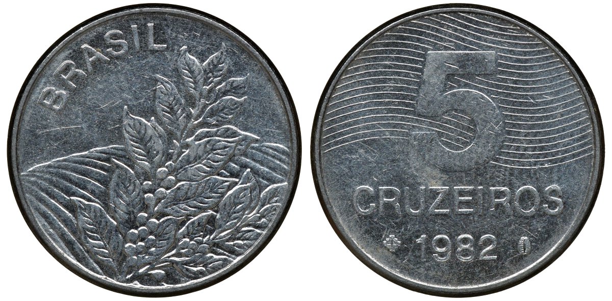 БРАЗИЛИЯ 5 КРУЗЕЙРО 1982 КОФЕ KM 591 сталь aUNC 72-932