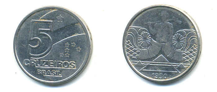 Бразилия 5 крузейро 1990 фермер KM 618.1 нержавеющая сталь aUNC 93-655