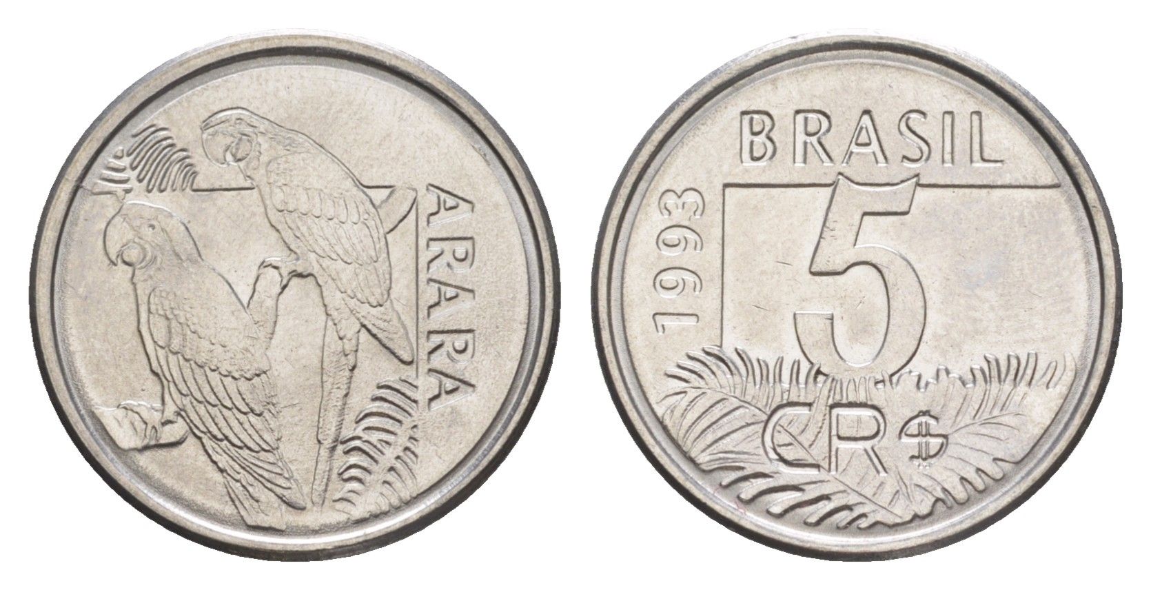 Бразилия 5 крузейро реал 1993 KM 627 нержавеющая сталь UNC 4644-532