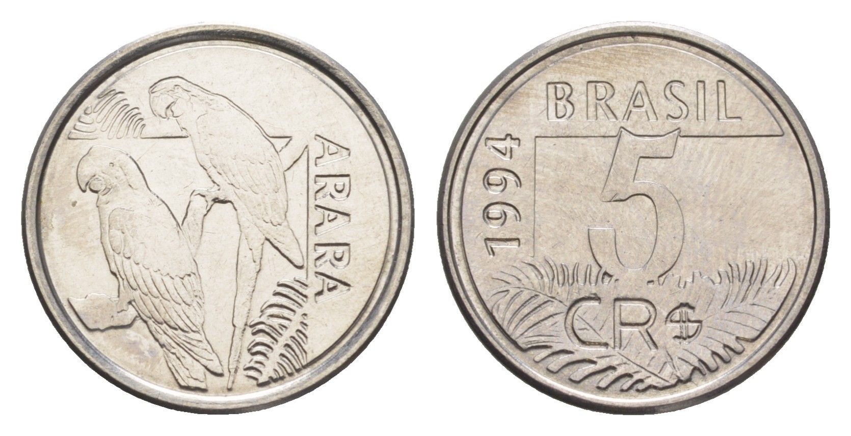 Бразилия 5 крузейро реал 1994 KM 627 нержавеющая сталь UNC 4644-533