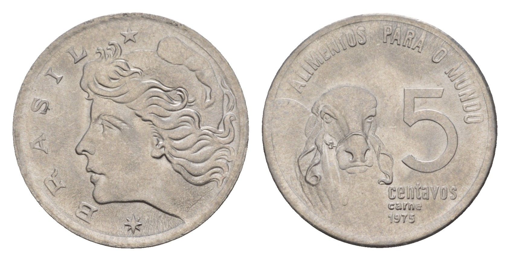 Бразилия 5 сентаво 1975 ФАО - Зебу KM 587 нержавеющая сталь UNC 4655-1056