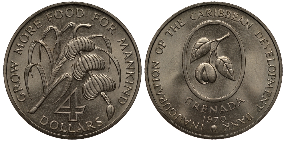 Гренада 4 доллара 1970 FAO, открытие Карибского Банка Развития KM 15 медно-никель UNC 272-441