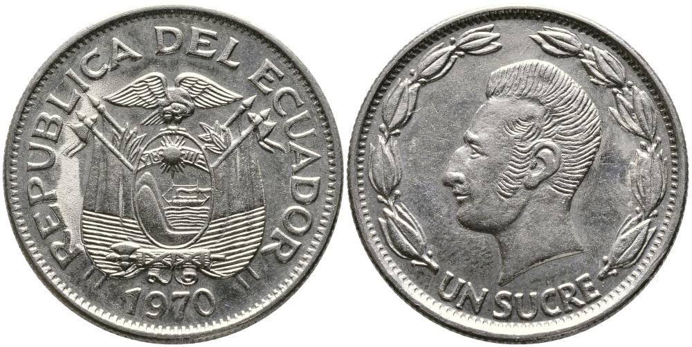 ЭКВАДОР 1 СУКРЕ 1970 АНТОНИО ХОСЕ де СУКРЕ KM 78b никелированная сталь 3336-632