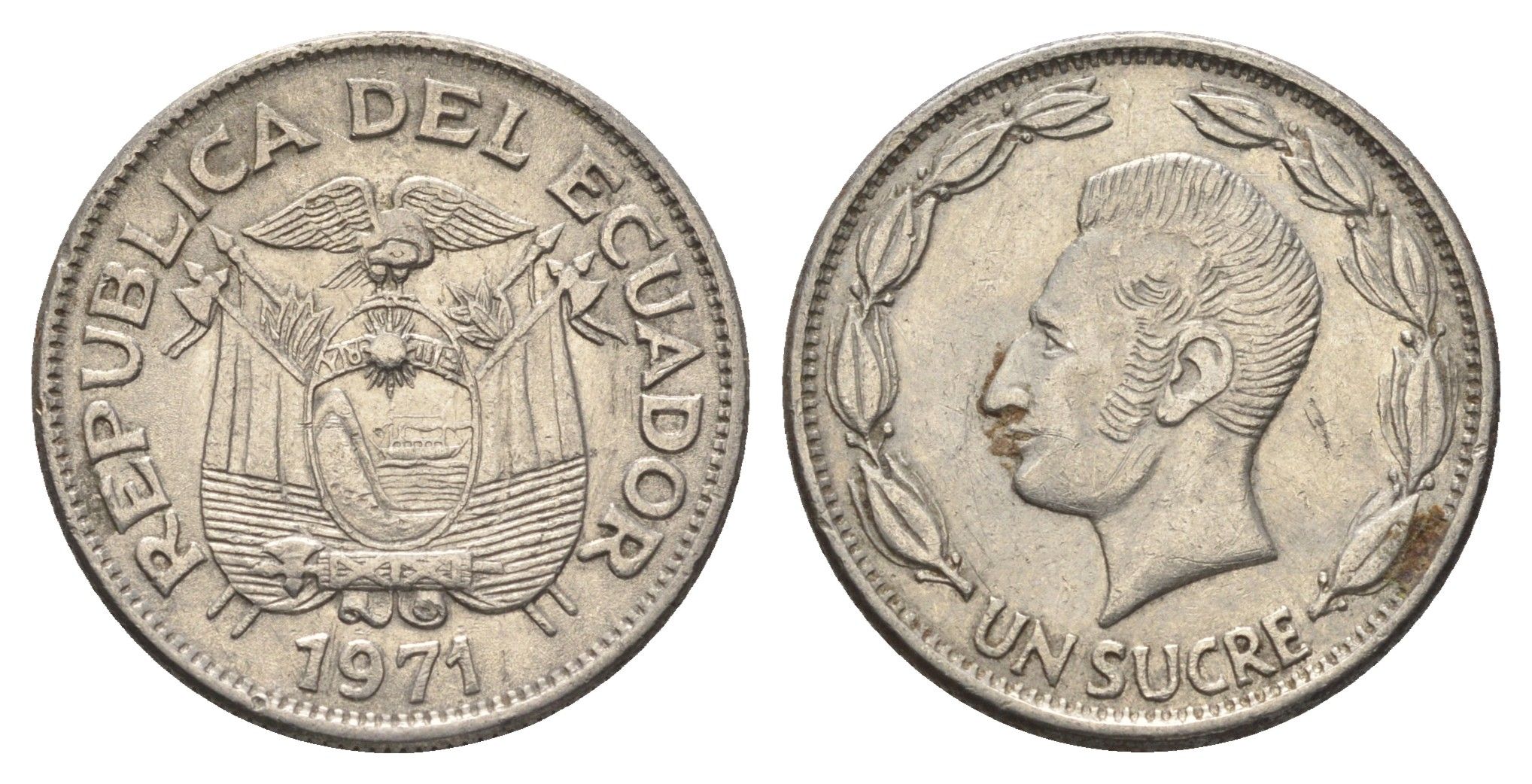 Эквадор 1 сукре 1971 Антонио Хосе Сукре KM 78b сталь плакированная никелем 4663-351