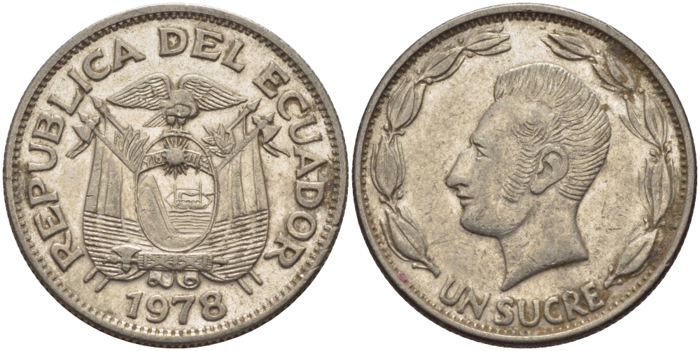 ЭКВАДОР 1 СУКРЕ 1978 АНТОНИО ХОСЕ де СУКРЕ KM 78b сталь плакированная никелем 31-353