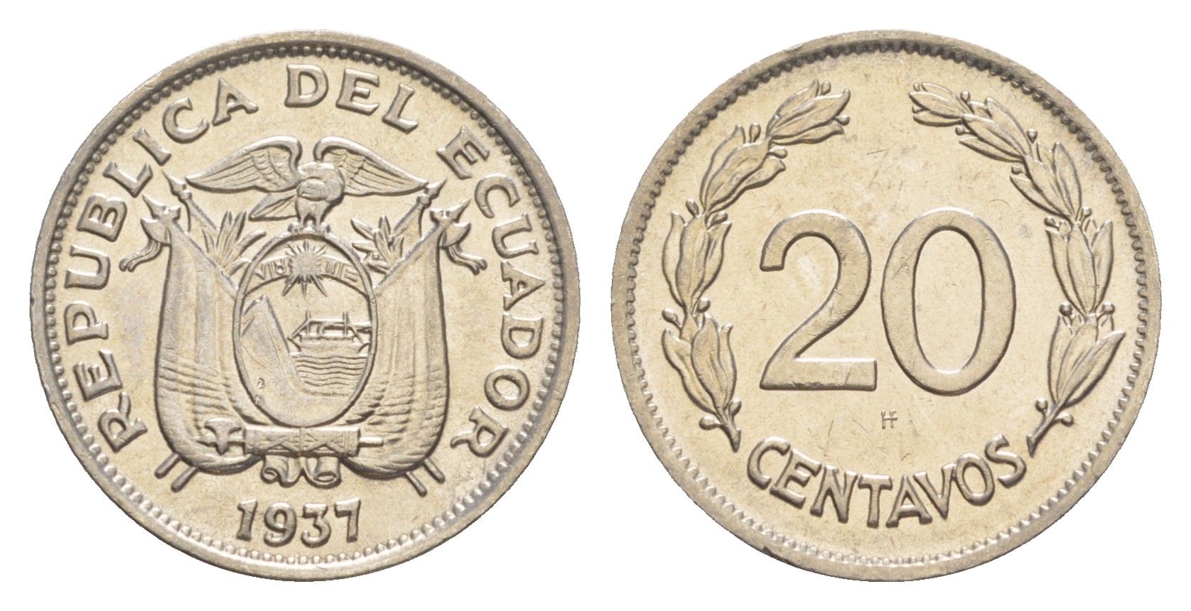 Эквадор 20 сентаво 1937 KM 77.1 никель UNC 4640-1168