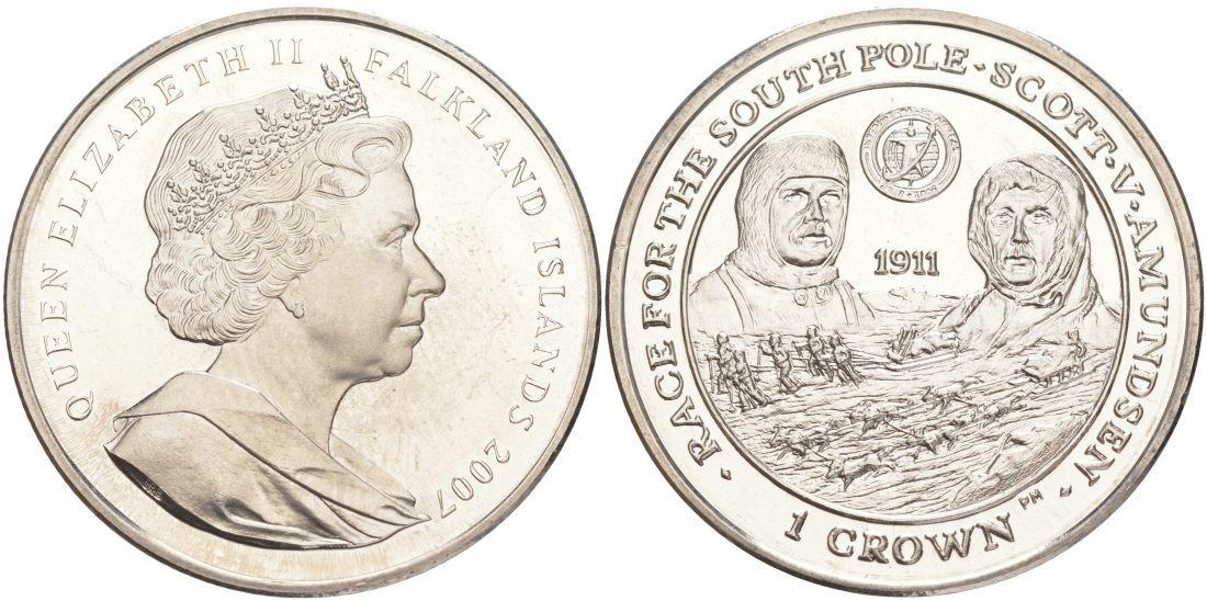 Фолклендские острова 1 крона 2007 экспедиции к Южному полюсу Скотта и Амундсена, 1911 KM 158 медно-никель UNC M26-17
