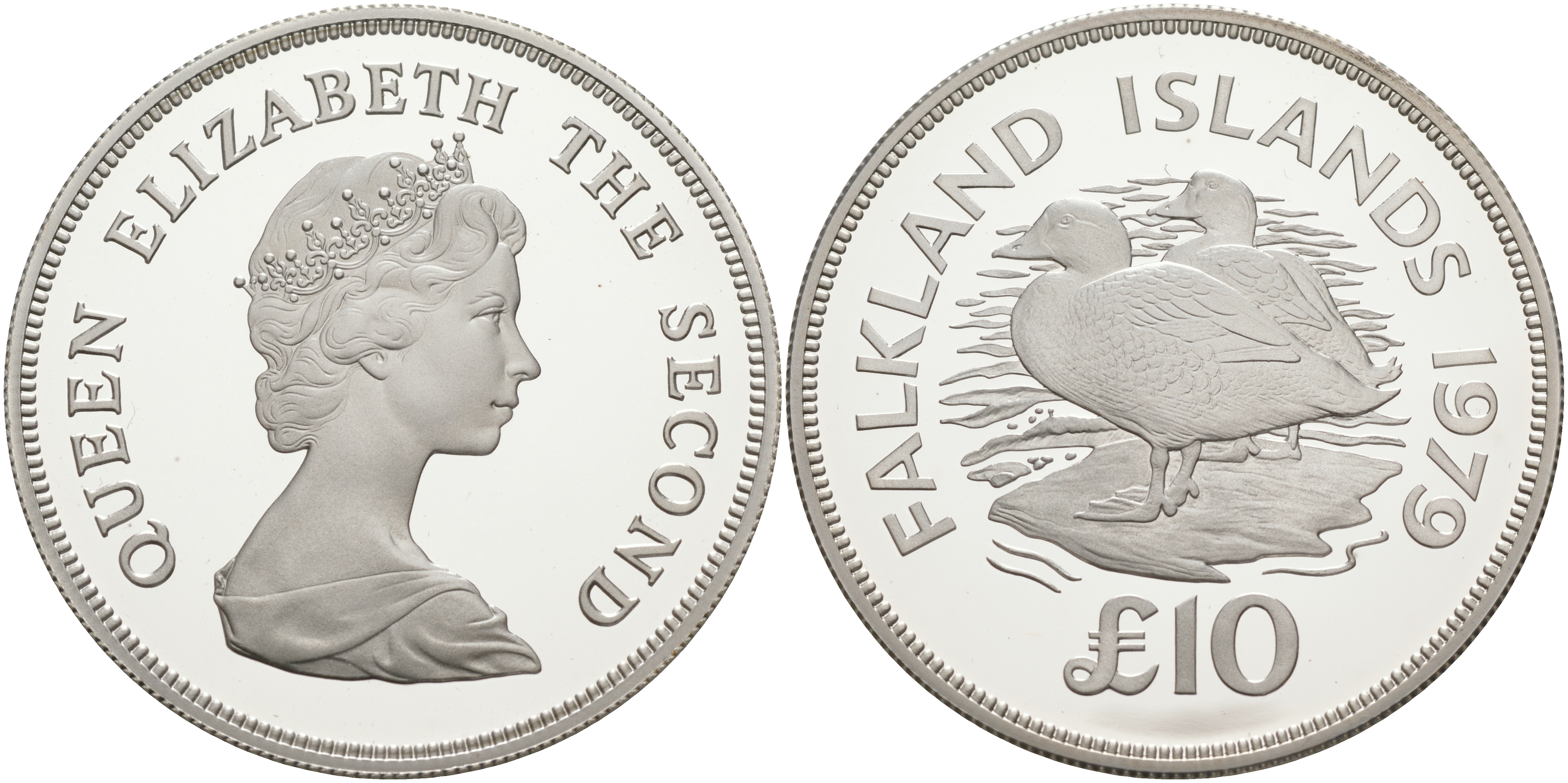 Фолклендские острова 10 фунтов 1979 серия сохраним наш мир, утка - пароход, тираж 3247 экземпляров KM 12 серебро PROOF 1074-4-61