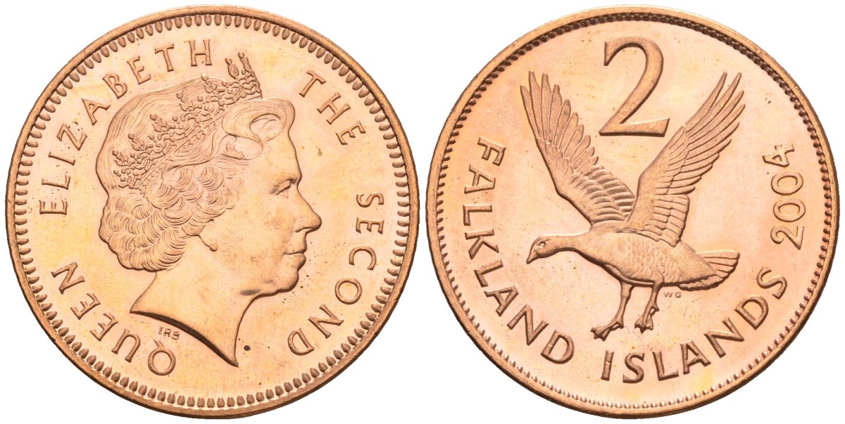 Фолклендские острова 2 пенса 2004 Елизавета II (1952-2022), магелланов гусь KM 131 сталь плакированная медью aUNC 87-123