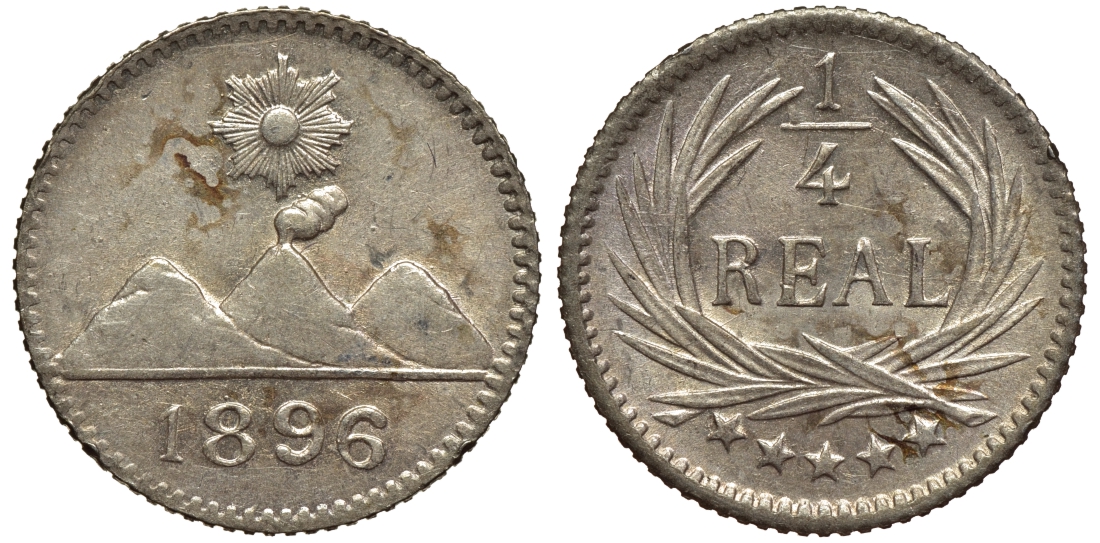 Гватемала 1/4 реала 1896 5 звезд, Испанское правление KM 162 серебро 116-667