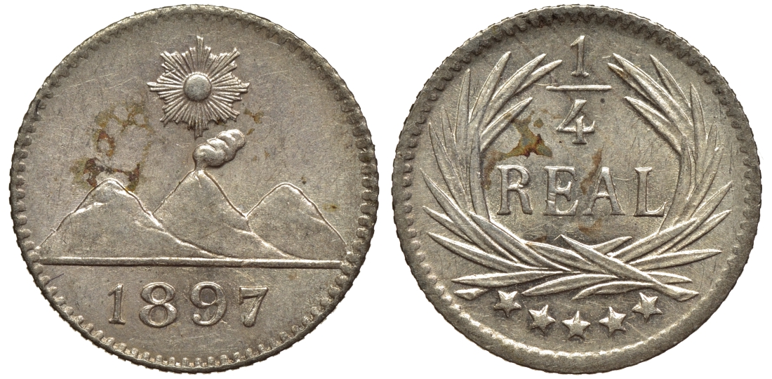 Гватемала 1/4 реала 1897 5 звезд, Испанское правление KM 162 серебро 112-1224