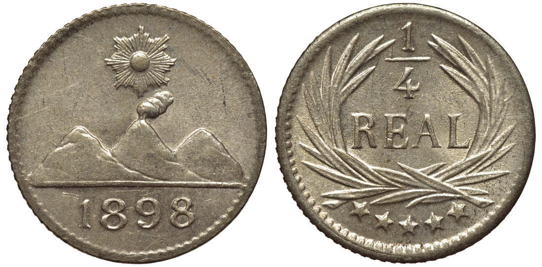 Гватемала 1/4 реала 1898 5 звезд, Испанское правление KM 162 серебро 4532-1242