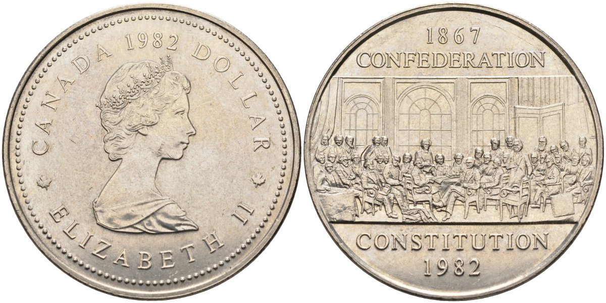 Канада 1 доллар 1982 115 лет конституции KM 134 никель aUNC 4578-214