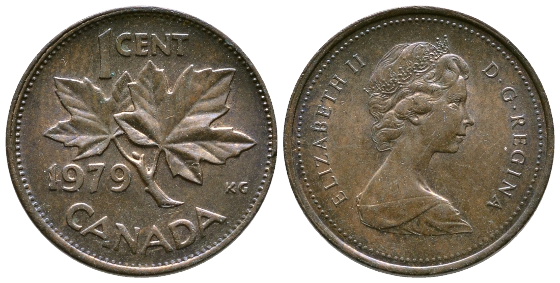 КАНАДА 1 ЦЕНТ 1979 КЛЕНОВЫЙ ЛИСТ, ЕЛИЗАВЕТА II (1953-) KM 59.2 бронза 46-1924