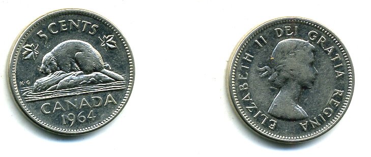 КАНАДА 5 ЦЕНТОВ 1964 БОБЕР KM 57 никель 04-413